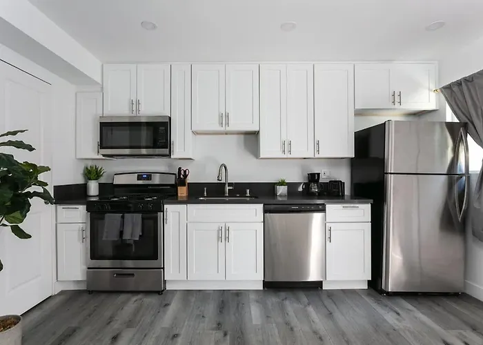Cette propriété Enjoy Stylish 3Br Apt Sleeps 6 With Free Parking fournit une cuisine équipée avec four et lave-vaisselle. Vous serez à proximité immédiate de l'arrêt de bus le plus proche, Chevy Chase & Maple.